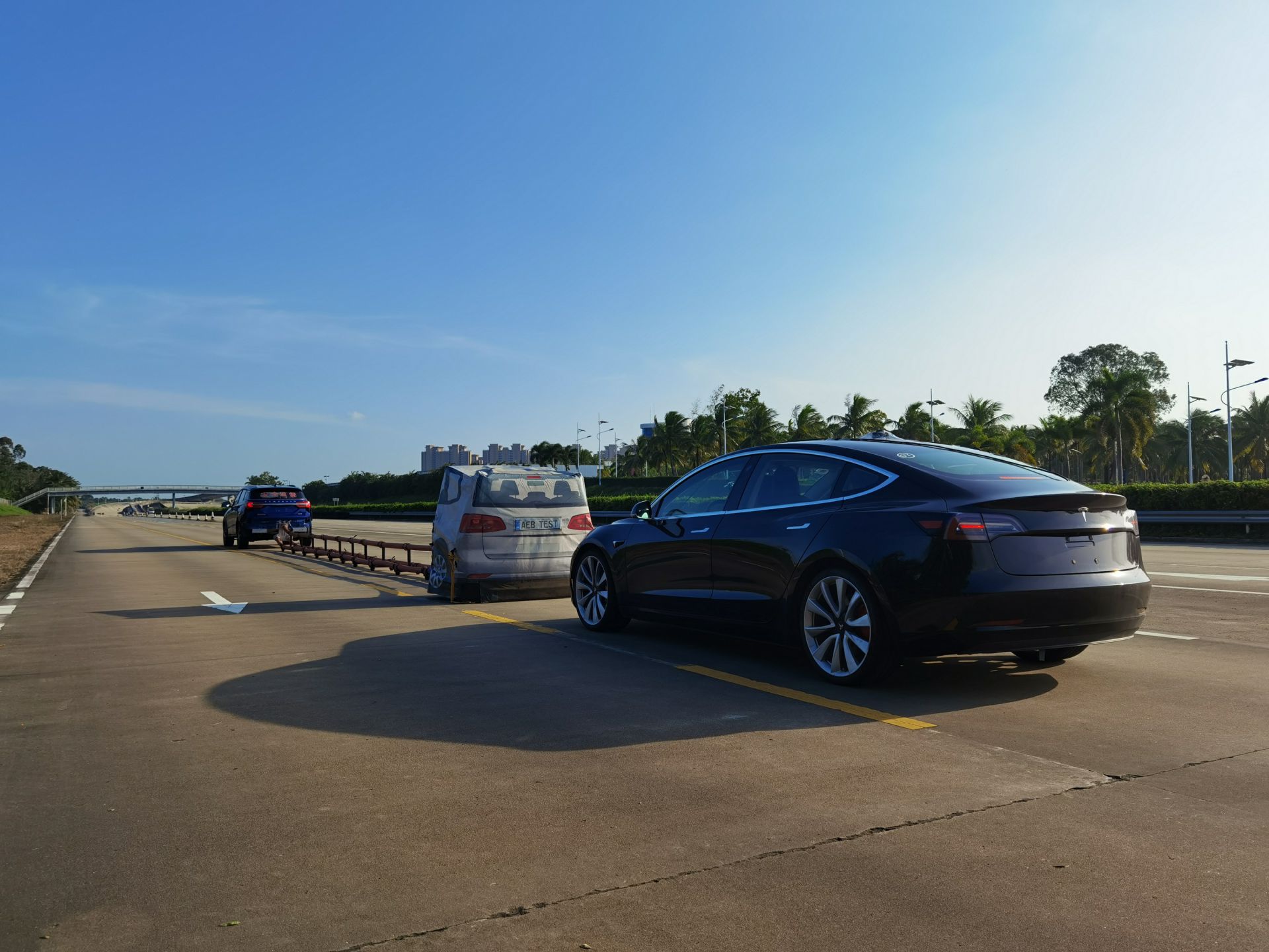 海南试验公司现已购置EVT/GVT目标假车、行人与非机动车模拟系统、自主驱动移动平台、惯导系统及双车协同控制系统,配备专用无线通讯、高精定位、环境感知、LTE-V路侧终端与车载终端、智能监控中心等。公司聚焦于智能网联汽车整车主动安全、V2X装备的测试评价技术研究与应用,主要为自动驾驶辅助系统(ADAS)的测试评价、车车通信(V2V)、车路协同(V2I)系统的测试及评价等。具备交通运输部营运车辆安全准入要求的车道偏离预警和前撞预警检测能力,并积极开发具有典型热带特色的测试场景。